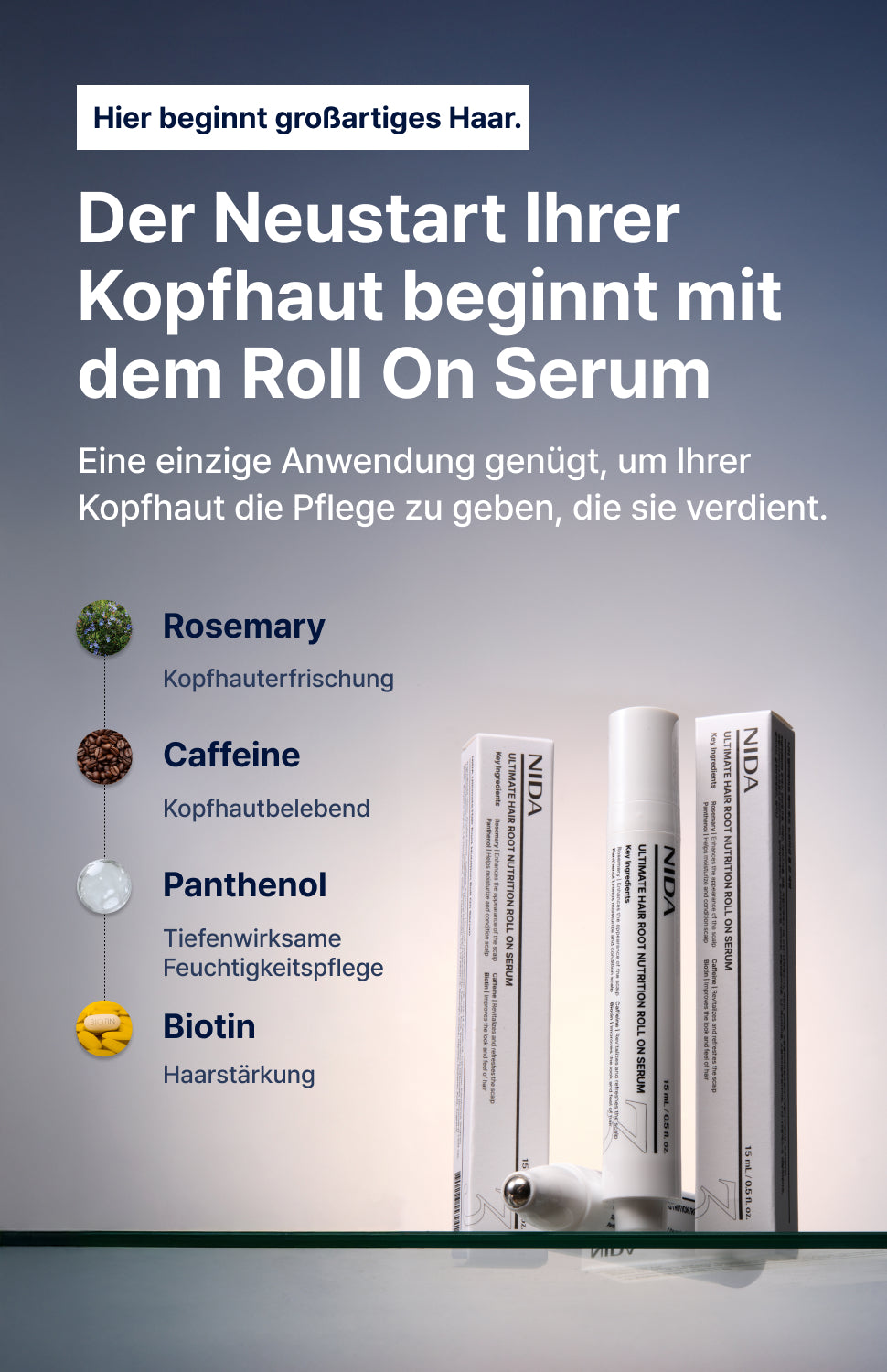 Das Roll-on-Design bringt die Nährstoffe direkt auf die Kopfhaut – ganz ohne Kleckern.