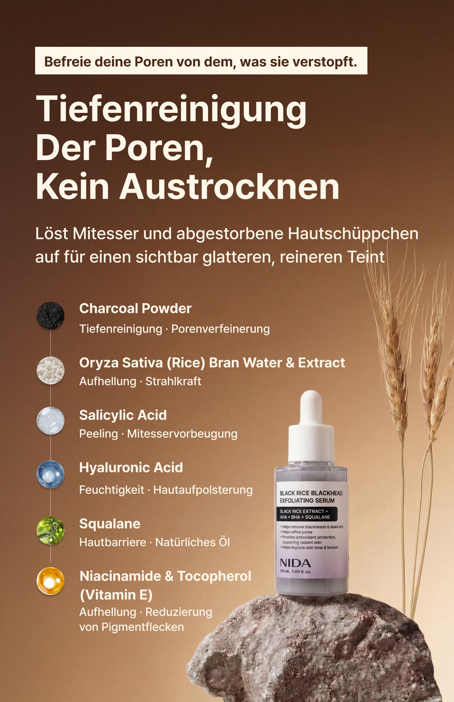 Hilft sanft dabei, Mitesser und abgestorbene Hautschüppchen aufzulösen – ohne die Haut auszutrocknen oder zu reizen.