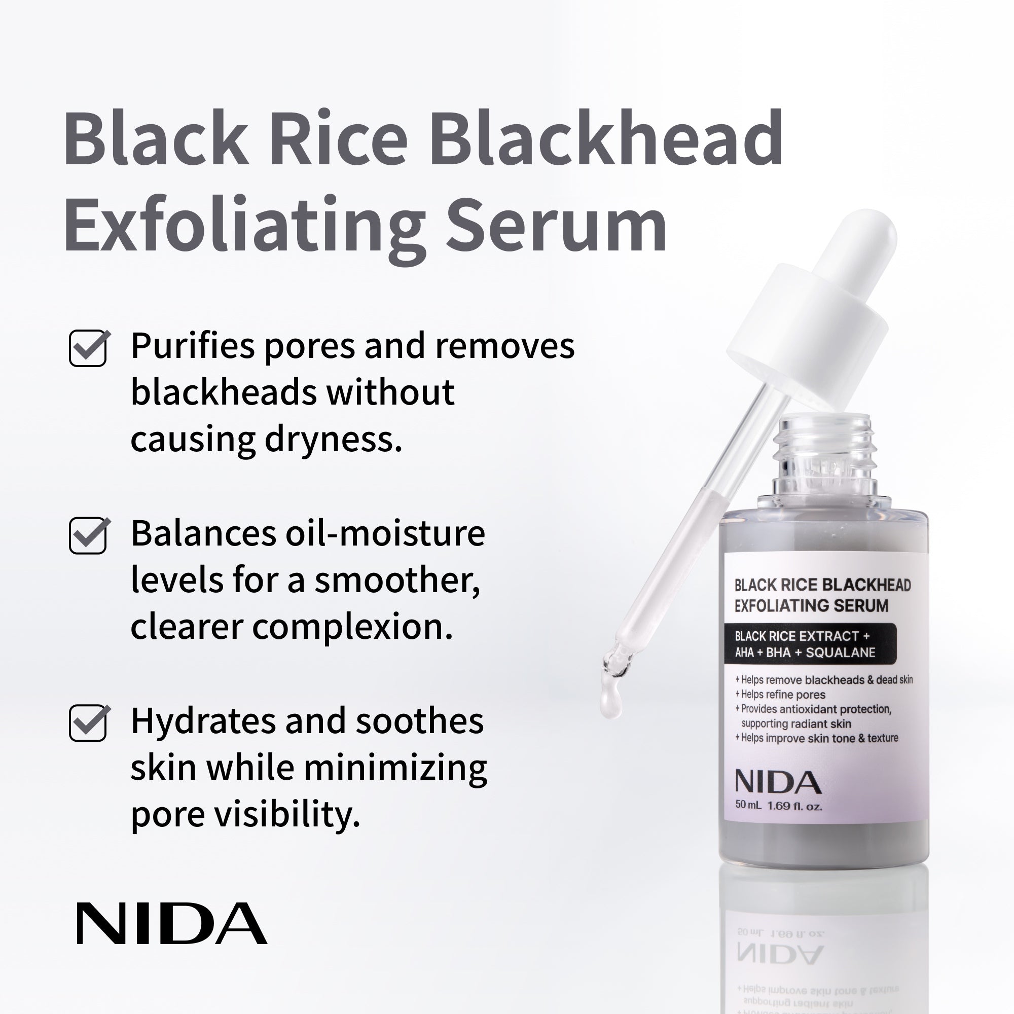 Experience the dual power of gentle exfoliation and deep hydration with the NIDA White & Black Rice Exfoliating Serum Duo Bundle. Achieve smoother, clearer, and brighter skin with a routine designed for visible results and everyday comfort.