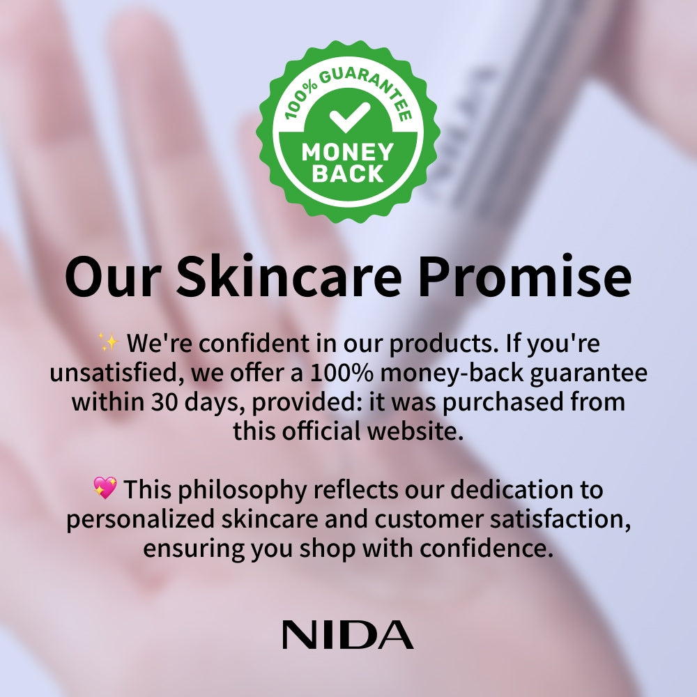 Nous avons confiance en nos produits. Si notre produit ne convient pas à votre peau ou si vous n'êtes pas satisfait(e), nous vous offrons une garantie de remboursement intégral *.