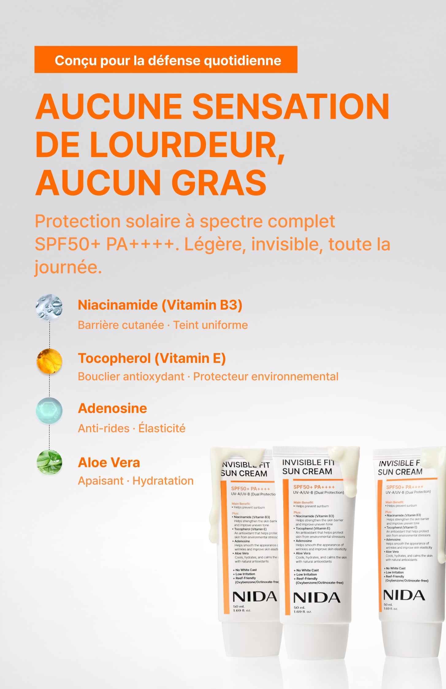 Crème solaire NIDA Invisible Fit