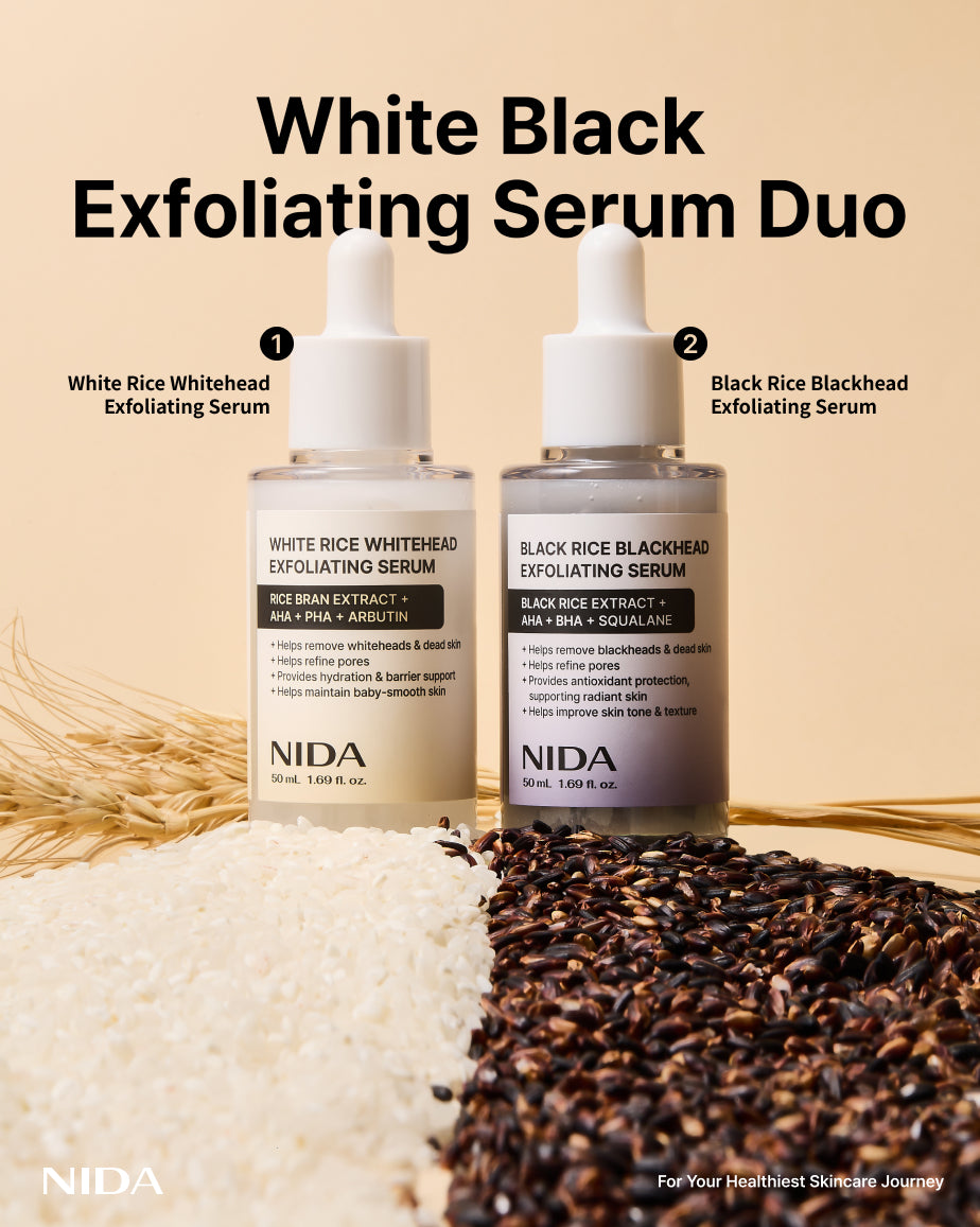 Ottieni una pelle luminosa e pori perfetti con i Sieri Esfolianti al Riso di NIDA.