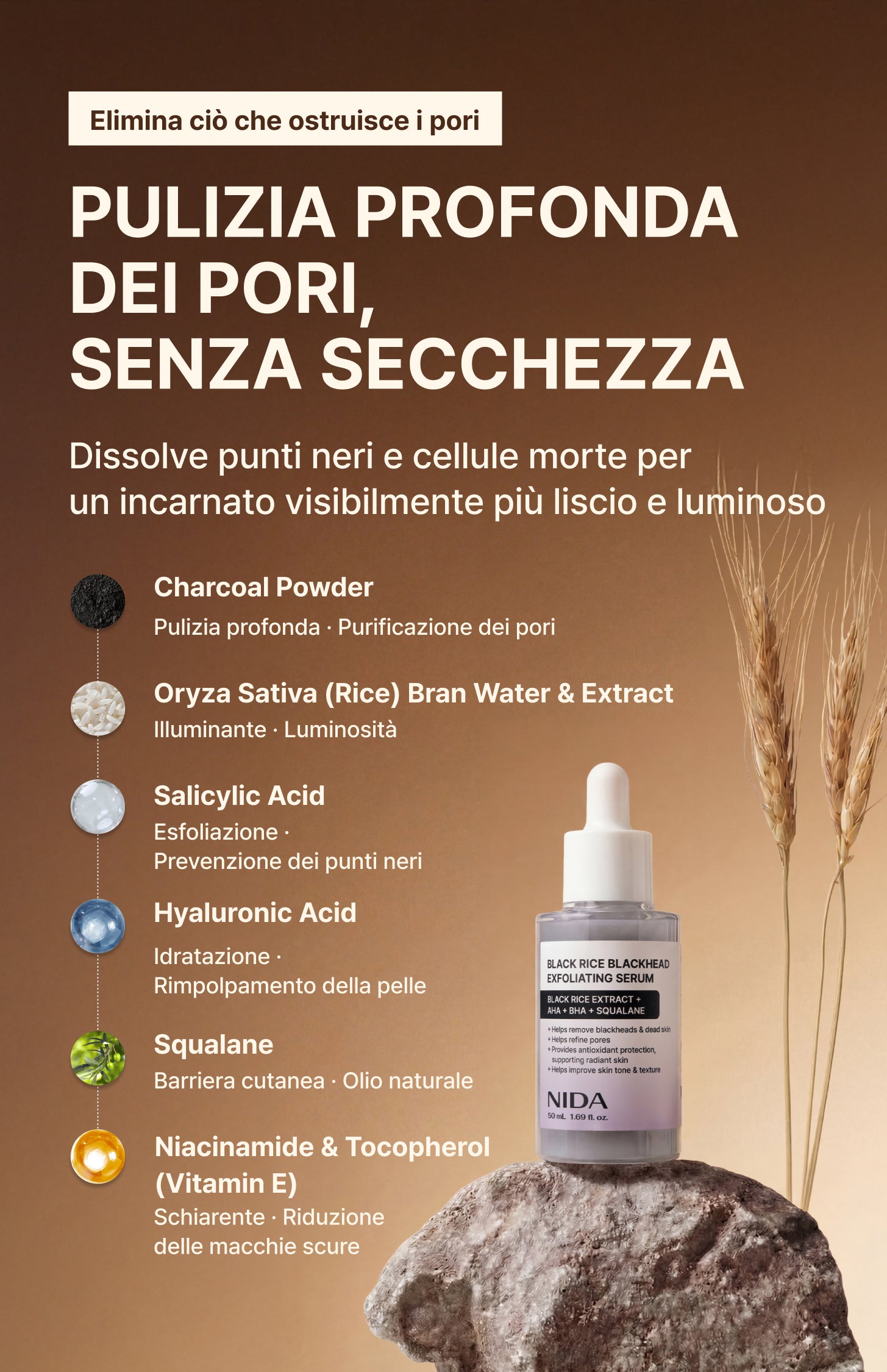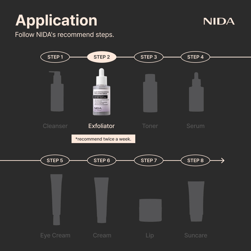 Suero exfoliante para puntos negros con arroz negro NIDA