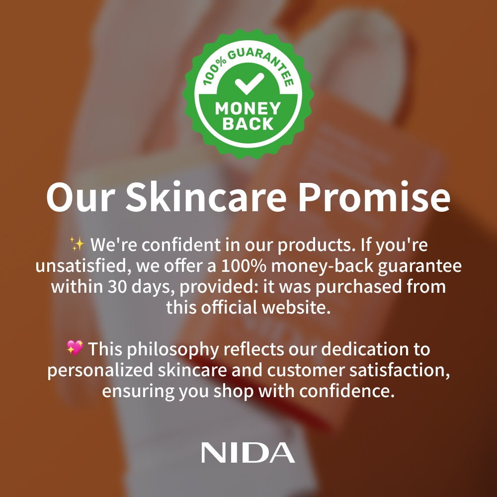 We're confident in our products. If our product does not suit your skin or you are not satisfied, we offer a 100% money-back guarantee*.
