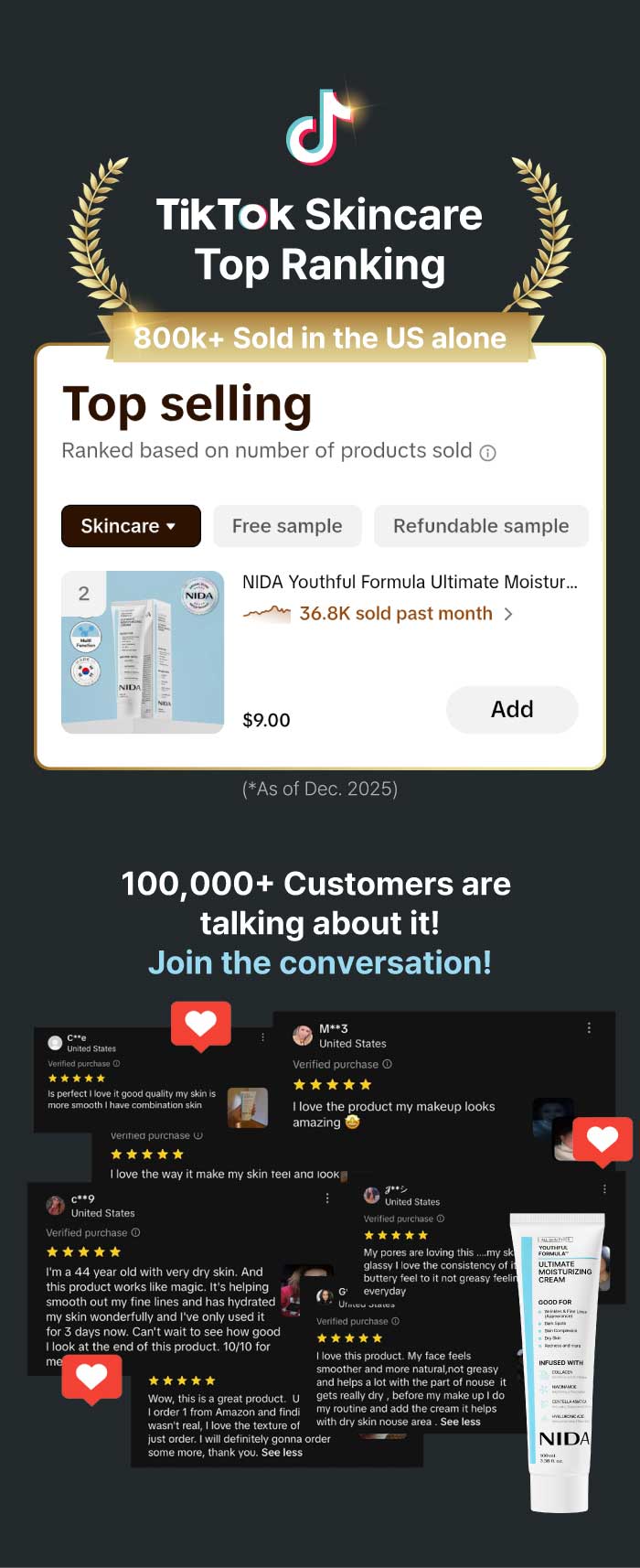 Wij hebben vertrouwen in onze producten. Als ons product niet geschikt is voor uw huid of u bent er niet tevreden mee, bieden wij een 100% geld-terug-garantie*.