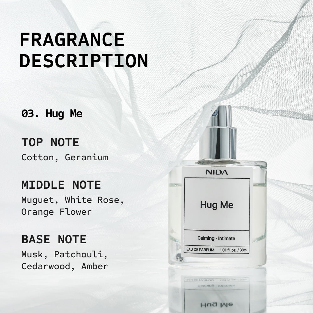 Step into a world where closeness lingers and quiet passion softly unfolds. NIDA “HUG ME” Eau de Parfum is crafted for those seeking a scent that feels like a gentle embrace—warm, delicate, and deeply inviting. Designed with sensual sophistication, it enhances your natural allure without overpowering, creating an aura of intimacy that draws others closer.